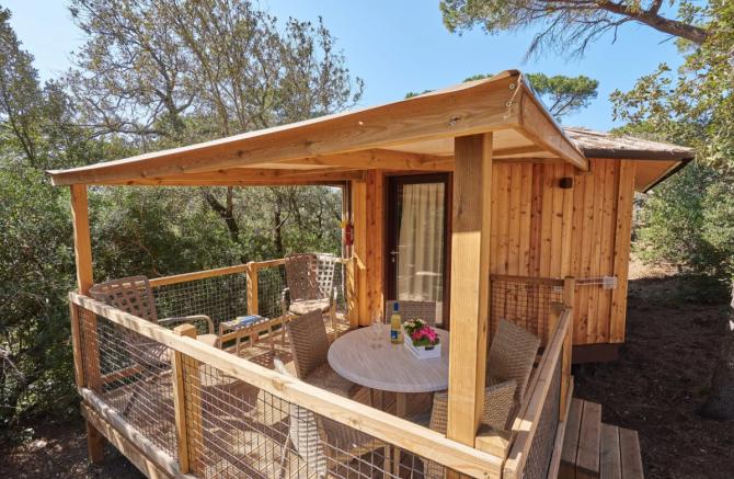 Das exklusive Chalet Capraia besteht aus einem Schlafzimmer mit Doppelbett und Einzelausziehbett, eigenem Badezimmer mit Dusche und Wohnbereich mit voll ausgestatteter Küchenzeile und Schlafsofa (Einzel- oder Doppelbett dank des Ausziehbetts im Inneren). Die Unterkunft bietet Platz für bis zu 4 Erwachsene und 1 Kind (unter 12 Jahren).